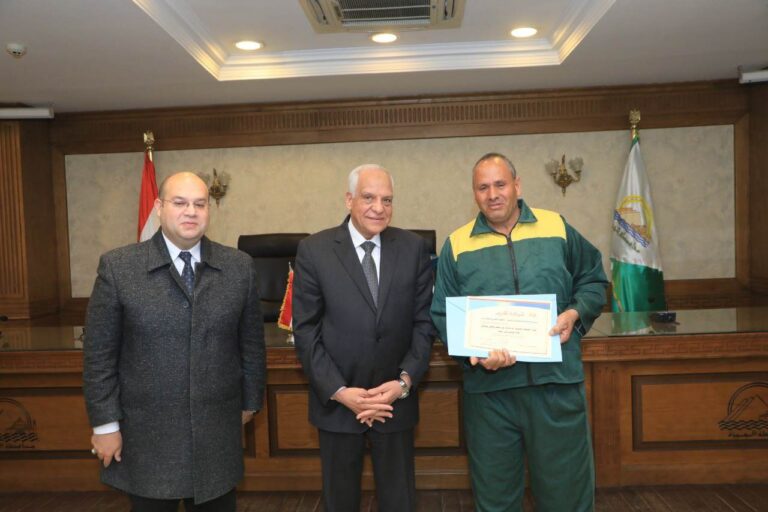 كرم اللواء أحمد راشد محافظ الجيزة صباح اليوم عدد ٣٠ عامل وعاملة من العاملين بالخدمات المعاونة والفنين والسائقين المتميزين بالجهاز التنفيذى بالأحياء والمراكز...