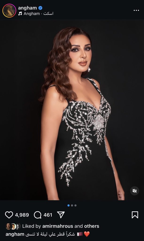 وكتبت أنغام على الصور قائلة : “شكرًا قطر على ليلة لا تنسى”.
