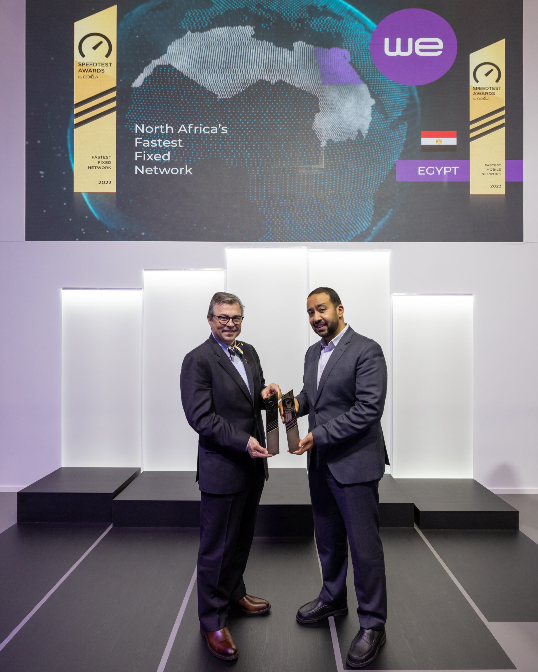 منحت شركة أوكلا Ookla ،الرائدة عالميًا في مجال قياس وتقييم سرعات الإنترنت، الشركة المصرية للاتصالات “WE” جائزتي “أسرع شبكة إنترنت أرضي ثابت في منطقة شمال أفريقيا” و”أسرع مقدم إنترنت موبايل في مصر”، وذلك في احتفالية أقامتها الشركة على هامش معرض برشلونة الدولي لشبكات الهواتف المحمولةMWC 2024 والذي يعقد في الفترة من 26 إلى 29 فبراير 2024. وقد تسلم الجائزتين المهندس محمد نصر، العضو المنتدب والرئيس التنفيذي للمصرية للاتصالات.