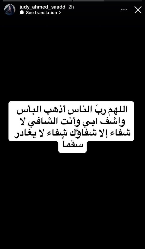 وكتبت جودي قائلة: “اللهم رب الناس أذهب البأس واشف أبي وأنت الشافي لا شفاء إلا شفاؤك، شفاءًا لا يغادر سقمًا”.