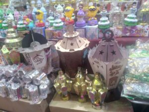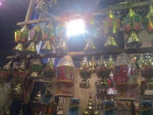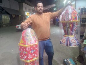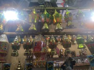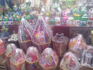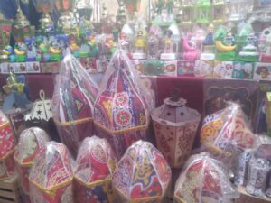 قال “محمد عثمان” صاحب أحد المعارض، إن هذا العام يختلف عن الأعوام الماضية فى تطوير أشكال الزينة والابتكارات التى تبعث البهجة فى كل مكان ومن أهم هذة التصميمات فانوس رمضان وهو الشكل التقليدى الذى لا يتغير مهما مر علية الزمن ولكن يختلف من حيث الخامة ويتنوع فى صناعتة من البلاستيك والعاج والصاج والزجاج والمضلع ذات الشمعة والخشب والخيامية وهو الأشهر على الإطلاق والستائر المضيئة المكونة من شرائط اللد الكهربائية التى تحتوى على شخصيات فنانيس بوجى وطمطم وبكار.