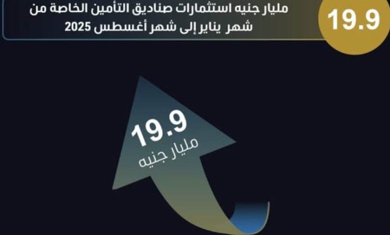 كما بلغت استثمارات صناديق التأمين الخاصة 19.9 مليار جنيه بنهاية أغسطس 2025.