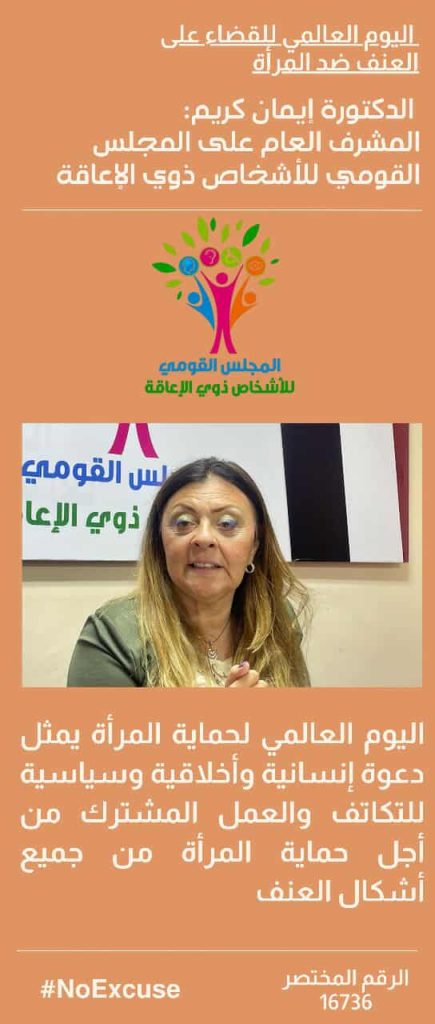 وأكدت المشرف العام على المجلس القومي للأشخاص ذوي الإعاقة، على دور الدولة المصرية في دعم المرأة المصرية، وإطلاق العديد من المبادرات الخاصة بذلك، مؤكدة على أهمية عقد الشراكات مع المؤسسات الدينية في مناهضة العنف ضد المرأة، لرفع وعي المجتمع بذلك، بالعديد من الحملات الدينية المختلفة، لافته أن المجلس أطلق عدد من المبادرات الخاصة بذلك، منها المبادرة القومية “أسرتي قوتي”، و”التوعية بالعنف الرقمي ضد المرأة”، فضلًا عن تمكينهم اقتصاديًا من خلال عدد من المبادرات منها مبادرة “حرفتنا من تراثنا”، ومبادرة “ريادة الأعمال الخضراء..بدايتك من البيئة”، وكذلك التعاون مع عدد من الجهات المعنية لتوزيع ماكينات خياطة على عدد من الفتيات والمرأة ذات الإعاقة، كما تضامن المجلس مع عدد من الفتيات والسيدات التي تعرضت لإنتهاكات، وتعديات، وقدم لهن الدعم القانوني والنفسي.