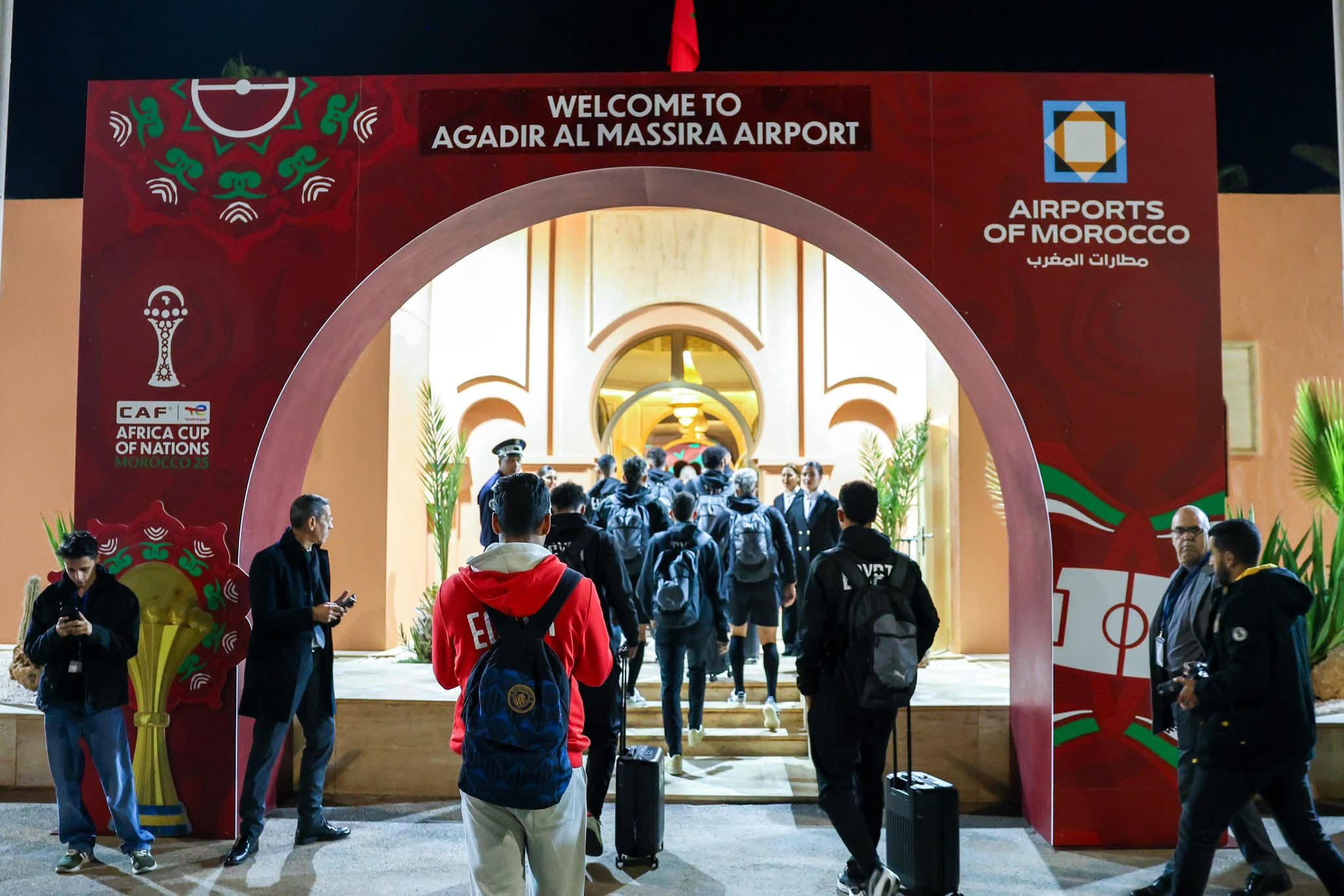 وصلت منذ قليل بعثة منتخب مصر الأول لكرة القدم، بقيادة الكابتن حسام حسن المدير الفني للفراعنة، إلى المملكة المغربية، وتحديدًا مدينة أكادير، وذلك استعدادًا لخوض منافسات بطولة كأس الأمم الأفريقية 2025، التي تستضيفها المغرب،والتي تنطلق 21 ديسمبر الجاري.