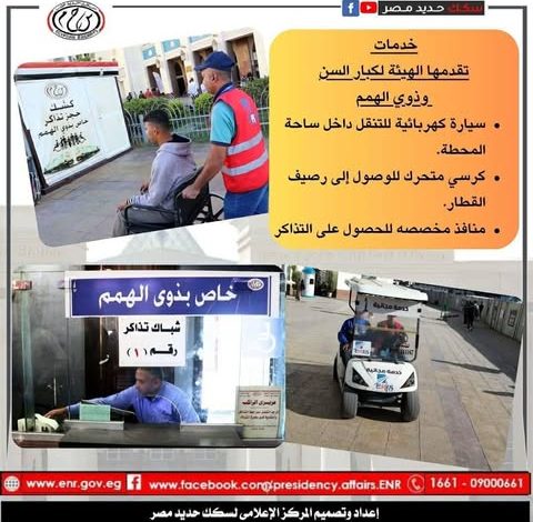 تحرص الهيئة القومية لسكك حديد مصر على الارتقاء بمستوى الخدمات المقدمة لكبار السن وذوي الهمم، انطلاقًا من مسؤوليتها المجتمعية وحرصها على تعزيز حقوقهم وتوفير خدمة أكثر ملاءمة لهم، سواء داخل المحطات أو على متن القطارات، وذلك تنفيذًا لتوجيهات وزارة النقل في هذا الشأن.