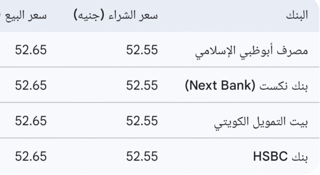 سجلت الشاشات اللحظية للبنوك استقرارًا عند مستويات الـ 52 جنيهًا، وفيما يلي تفاصيل أسعار البيع والشراء في أبرز المؤسسات المصرفية: