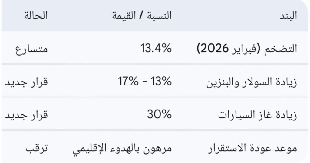 بالتوازي مع هذه الإجراءات، ولأول مرة منذ أكتوبر الماضي، أقرت الحكومة زيادة في أسعار الوقود لمواكبة الارتفاع العالمي في تكاليف الطاقة الناتج عن التوترات الإقليمية.
