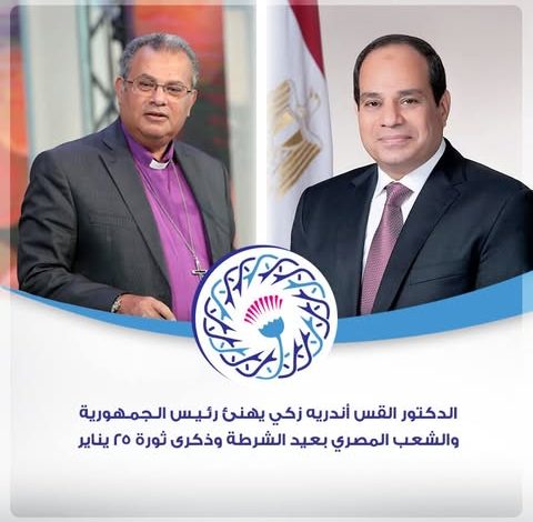 رئيس الطائفة الإنجيلية أندريه زكي يهنئ رئيس الجمهورية والشعب المصري بعيد الشرطة وذكرى ثورة ٢٥ يناير