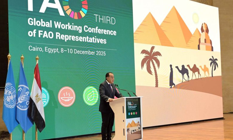 وخلال كلمته، أشار رئيس مجلس الوزراء إلى أن استضافةَ مصر للمؤتمر العالمي الثالث لممثلي منظمة الأغذية والزراعة، تعكس التزام الدولة المصرية الراسخ بدعم المنظمة ودورها المحوري في تعزيز الأمن الغذائي العالمي، وتطوير النظم الزراعية والغذائية، ودعم الدول الأكثر احتياجاً في مواجهة التحديات الإنسانية والاقتصادية.