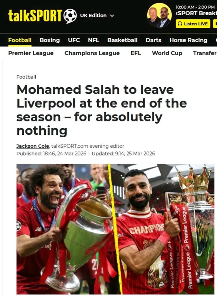 جاء إعلان صلاح عبر مقطع فيديو مؤثر على منصات التواصل الاجتماعي، ليعلن نهاية الرحلة بشكل “مجاني” بنهاية عقده، وسط انتقادات لاذعة من شبكة “توك سبورت” لإدارة النادي التي سمحت برحيل أسطورة بهذا الحجم دون مقابل مادي.