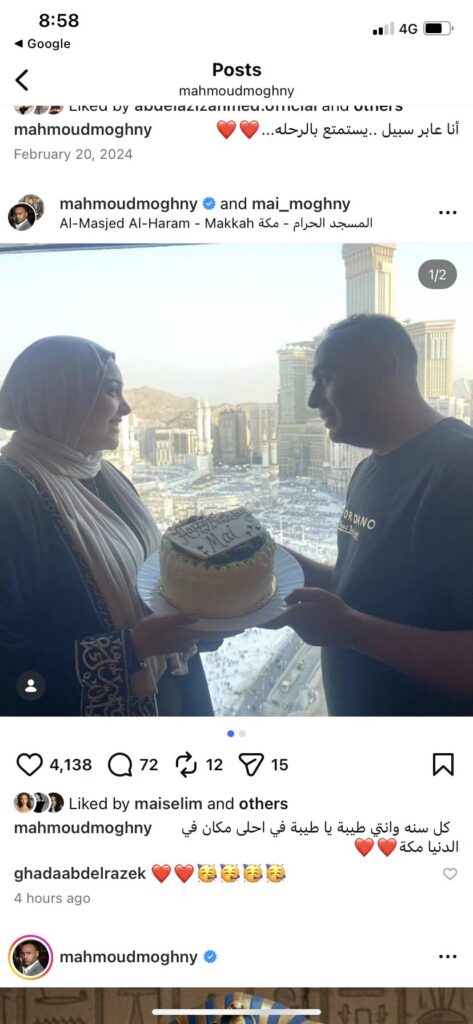 وكتب محمود عبد المغني، على الصورة قائلاً: “كل سنة وأنتي طيبة يا طيبة في أحلى مكان في الدنيا مكة”.