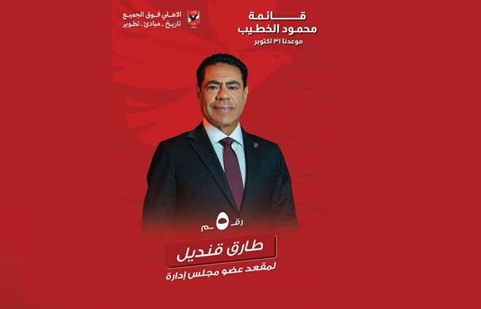 كشف طارق قنديل، عضو مجلس إدارة النادي الأهلي ومدير عام أول بالمصرف العربي الدولي AIB، عن ترشحه لعضوية مجلس إدارة النادي ضمن قائمة الكابتن محمود الخطيب في انتخابات الأهلي المقرر عقدها يوم 31 أكتوبر 2025، تحت شعار «تكملة المشوار.. تنمية واستثمار».