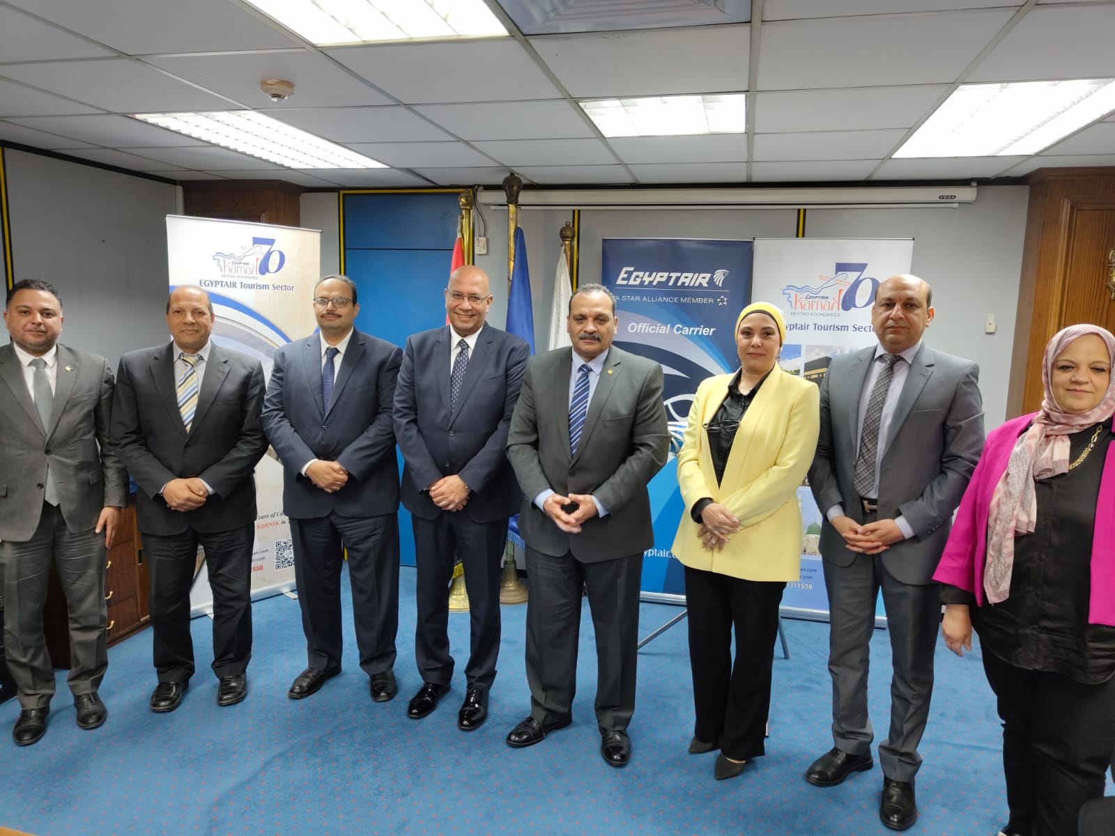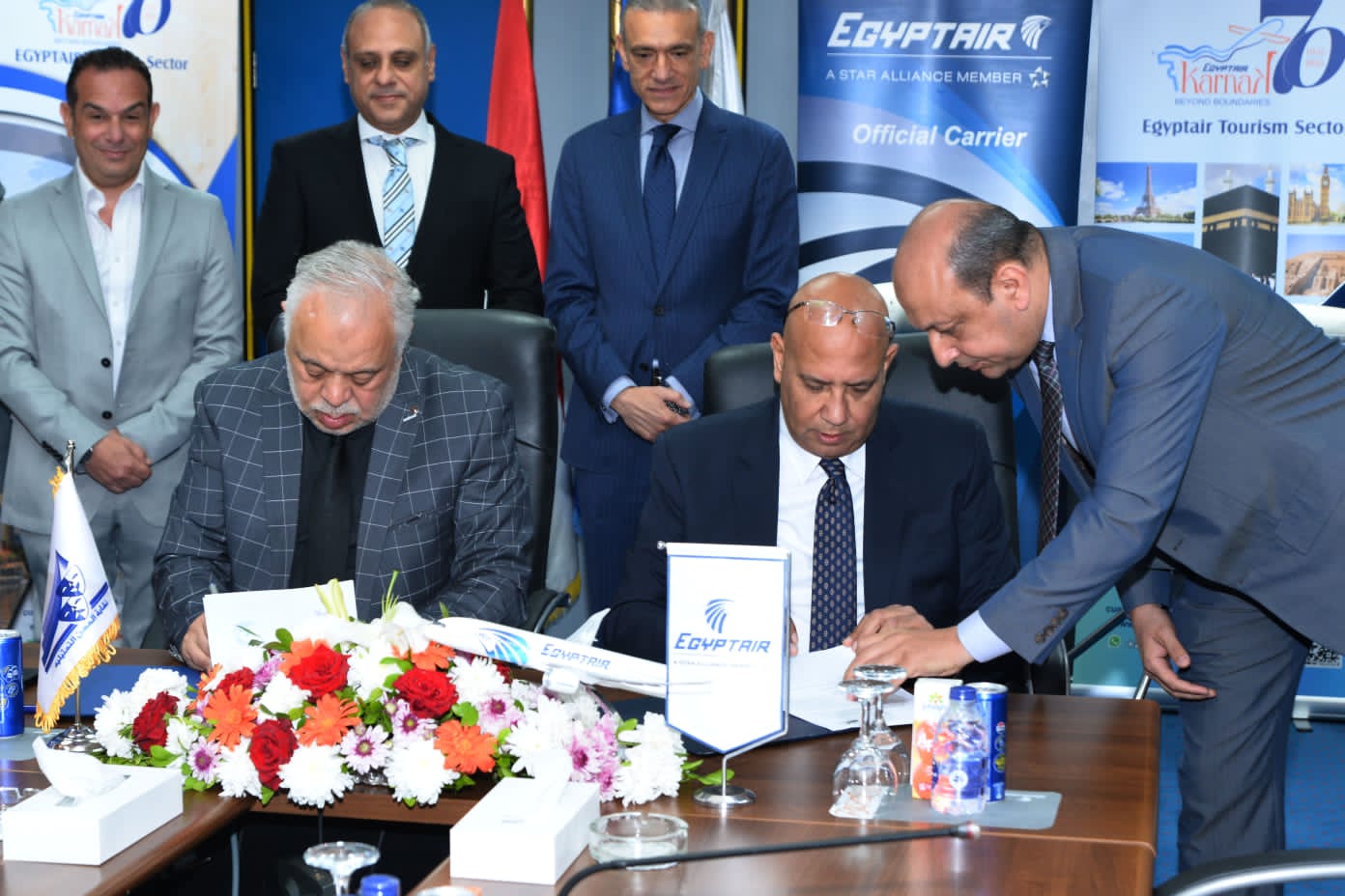 شهد مراسم التوقيع الطيار محمد عليان رئيس شركة مصر للطيران للخطوط الجوية والسيد/عمرو عدوي رئيس قطاع الشئون التجارية ، حيث وقع السيد/ أشرف راتب رئيس قطاع السياحة (الكرنك) بروتوكولات تعاون مع كلٍ من وزارة الثقافة ممثلة في نقابة المهن التمثيلية ووقع عنها الدكتور/أشرف زكي نقيب المهن التمثيلية، ووزارة المالية ممثلة في مصلحة الخزانة العامة وسك العملة، والأمانة العامة لمجلس الأمن القومي ووقع عنها السيد/ أحمد الصادق رئيس المصلحة والأمين العام المساعد للشئون المالية والإدارية، ومؤسسة نهضة مصر للصحافة والإعلام ووقع عنها الدكتور/ أحمد محمد إبراهيم رئيس مجلس الإدارة، وجامعة الملك سلمان الدولية ووقع عنها الدكتور/ تامر محمد عباس عميد كلية السياحة والفنادق، وجامعة بنها الأهلية ووقع عنها الدكتور /تامر سمير عبد المجيد رئيس الجامعة.