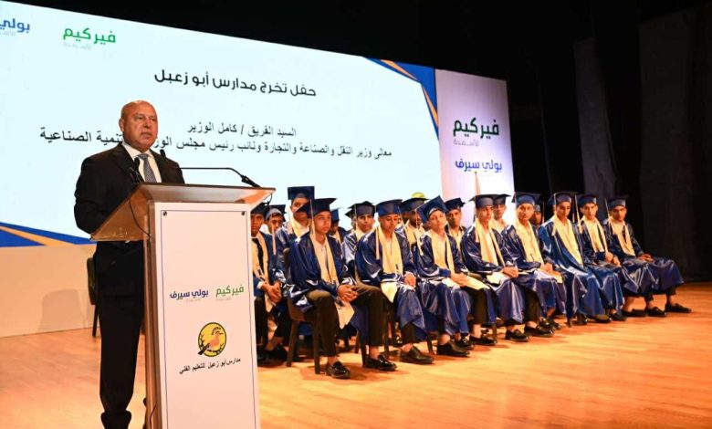 وفي ختام كلمته، وجّه الوزير الشكر لمجموعة بولي سيرف للأسمدة برئاسة الدكتور شريف الجبلي والدكتور عبد السلام الجبلي على دورهما في دعم التعليم الفني التطبيقي، وإقامة المدرسة داخل مصنع فيركيم مصر للأسمدة والكيماويات بأبو زعبل، مؤكدًا أن التعاون بين الدولة والقطاع الخاص هو الطريق نحو بناء جيل جديد من العمالة الفنية القادرة على قيادة قاطرة الصناعة المصرية نحو مستقبل أكثر تنافسية واستدامة.