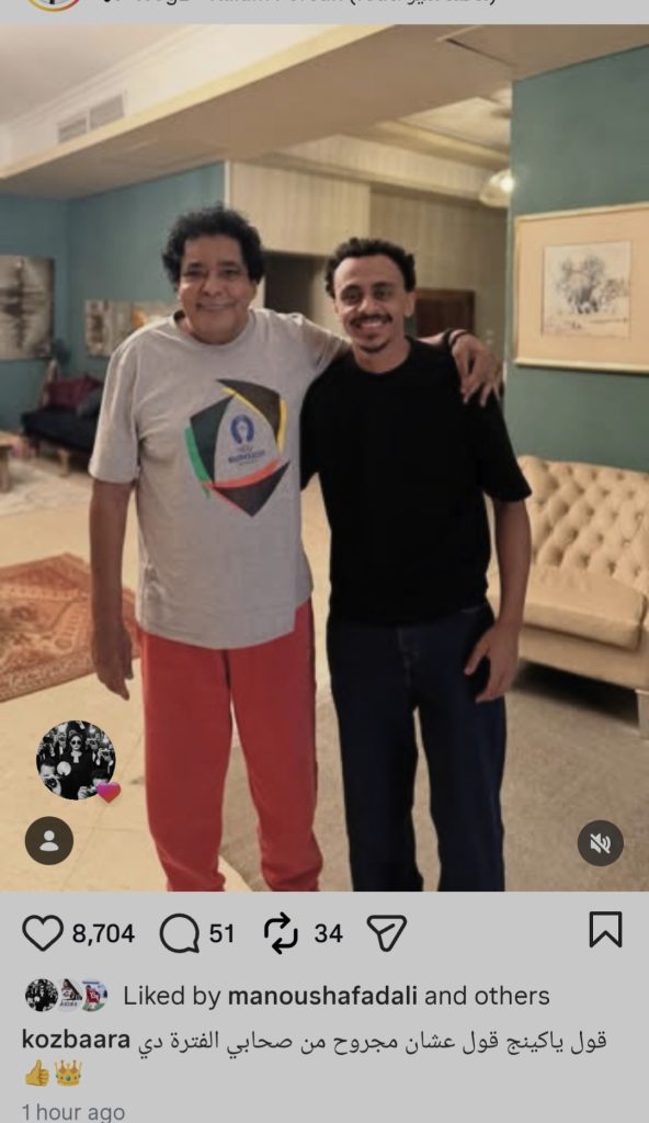 نشر أحمد بحر الشهير ب”كزبرة”، صورة برفقة الفنان الكبير محمد منير، عبر صفحته الرسمية على موقع التواصل الاجتماعي لتبادل الصور والفيديوهات الشهير بإنستجرام، أثار بها جدل واسعا .