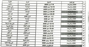 وفي شهري مارس وأبريل 2026، تنطلق القوافل إلى قرية أبو رواش بمركز كرداسة يومي الثلاثاء والأربعاء 3 و4 مارس، وقرية منشأة دهشور بمركز البدرشين يومي الثلاثاء والأربعاء 10 و11 مارس، ومنطقة نزلة السمان بحي الهرم يومي الثلاثاء والأربعاء 17 و18 مارس، وقرية ناهيا بمركز كرداسة يومي الثلاثاء والأربعاء 24 و25 مارس، ومنطقة 800 فدان بمدينة السادس من أكتوبر يومي الثلاثاء والأربعاء 31 مارس و1 أبريل، وقرية أطريس بمركز منشأة القناطر يومي الجمعة والسبت 3 و4 أبريل، وقرية دهشور بمركز البدرشين يومي الثلاثاء والأربعاء 7 و8 أبريل، وقرية بني مجدول بمركز كرداسة يومي الثلاثاء والأربعاء 14 و15 أبريل، ومنطقة مساكن دهشور بمدينة السادس من أكتوبر يومي الثلاثاء والأربعاء 21 و22 أبريل، وقرية منديشة بمركز الواحات يومي الثلاثاء والأربعاء 28 و29 أبريل.