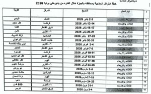 وتستهدف خطة القوافل خلال شهر يناير 2026 قرية الودي بمركز الصف يومي الجمعة والسبت 2 و3 يناير، وقرية كفر حكيم بمركز كرداسة يومي الثلاثاء والأربعاء 13 و14 يناير، وقرية القطا بمركز منشأة القناطر يومي الجمعة والسبت 16 و17 يناير، ومنطقة الأمل بمدينة السادس من أكتوبر يومي الثلاثاء والأربعاء 20 و21 يناير، وقرية نزلة الشوبك بمركز البدرشين يومي الثلاثاء والأربعاء 27 و28 يناير، وقرية البرغوثي بمركز العياط يومي الجمعة والسبت 30 و31 يناير.
