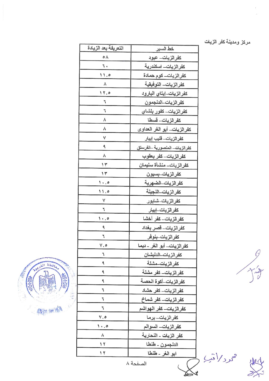 أصدر اللواء الدكتور علاء عبدالمعطي محافظ الغربية قرارًا بتعديل تعريفة الركوب لوسائل المواصلات على جميع الخطوط الداخلية بين مراكز ومدن المحافظة، وكذلك الخطوط الخارجية التي تربط الغربية بالمحافظات الأخرى، بالإضافة إلى خطوط النقل الداخلي، وذلك بما يتناسب مع الزيادة الجديدة في أسعار المنتجات البترولية، وفق الجداول المرفقة بالتعريفة المعتمدة.