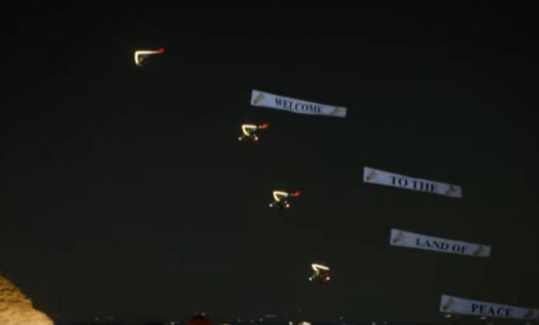 وفي بداية الاحتفالية، ظهرت عبارة “مرحبًا بكم في أرض السلام” في السماء خلال عرض ضخم بعنوان “موسيقى من أجل الإنسانية”، جمع أكثر من 120 موسيقيًا وفنانًا من 79 دولة بقيادة المايسترو ناير ناجي، ليكون الاحتفال رسالة سلام وتناغم من مصر إلى شعوب العالم كافة.