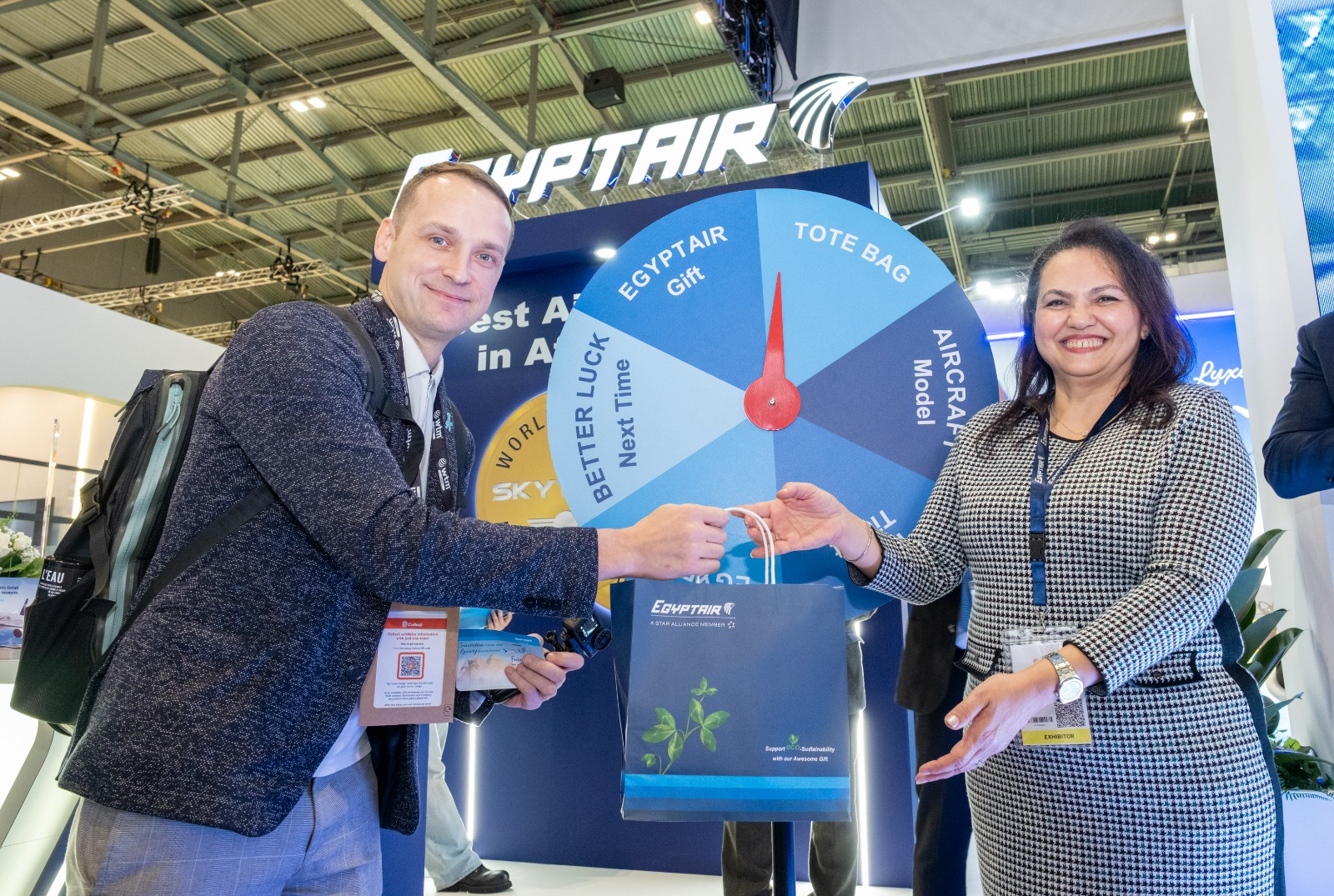 وشهد جناح مصر للطيران خلال فعاليات المعرض تنظيم سحب قرعة وعجلة حظ في أجواء مبهجة جذبت الزائرين، وتم خلالها توزيع هدايا متنوعة على الفائزين، في إطار حرص الشركة على التواصل المباشر مع جمهورها والترويج لخدماتها بصورة مبتكرة وجذابة.