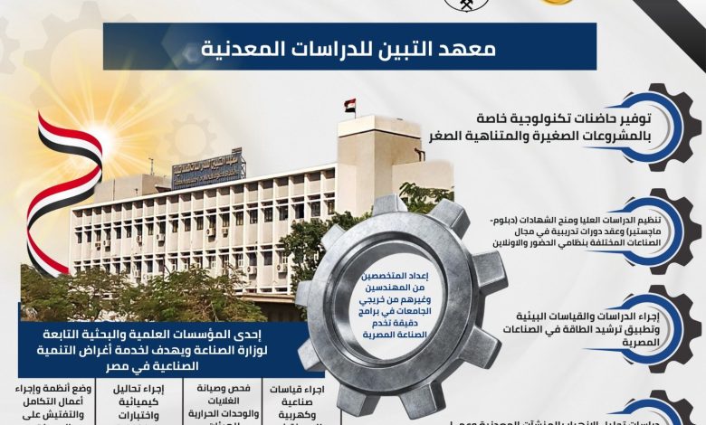 واصل معهد التبين للدراسات المعدنية، التابع لوزارة الصناعة، دوره الحيوي كأحد أهم الكيانات العلمية والبحثية الداعمة لمسيرة التنمية الصناعية في مصر، من خلال برامجه المتخصصة وخدماته المتنوعة التي تستهدف رفع كفاءة الكوادر الصناعية وتعزيز تنافسية المنتج المصري محليًا ودوليًا.