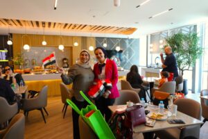 وقام فريق العلاقات العامة والإعلام بشركة ميناء القاهرة الجوي باستقبال المسافرين بالورود وتوزيع الشيكولاتة وأعلام مصر في لفتة تعكس روح الانتماء والاعتزاز بالوطن. كما حرص الفريق على التقاط الصور التذكارية مع الركاب من مختلف الجنسيات وسط أجواء من البهجة والفرحة.