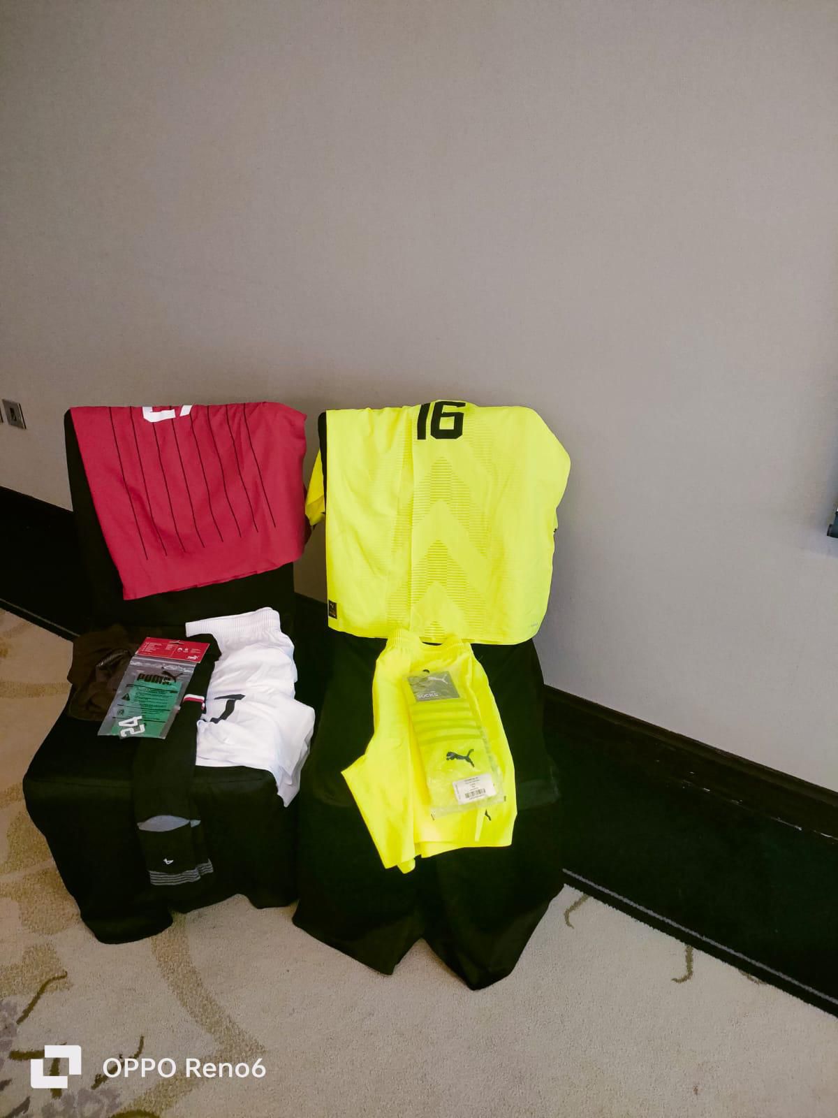 أسفر الاجتماع الفني لمباراة منتخب مصر أمام موريتانيا المقرر لها السابعة مساء غد الجمعة عن ارتداء منتخب مصر القميص الأحمر و الشورت الأبيض و الجورب الأسود ، بينما يرتدي منتخب موريتانيا القميص الأخضر و الشورت الأخضر.