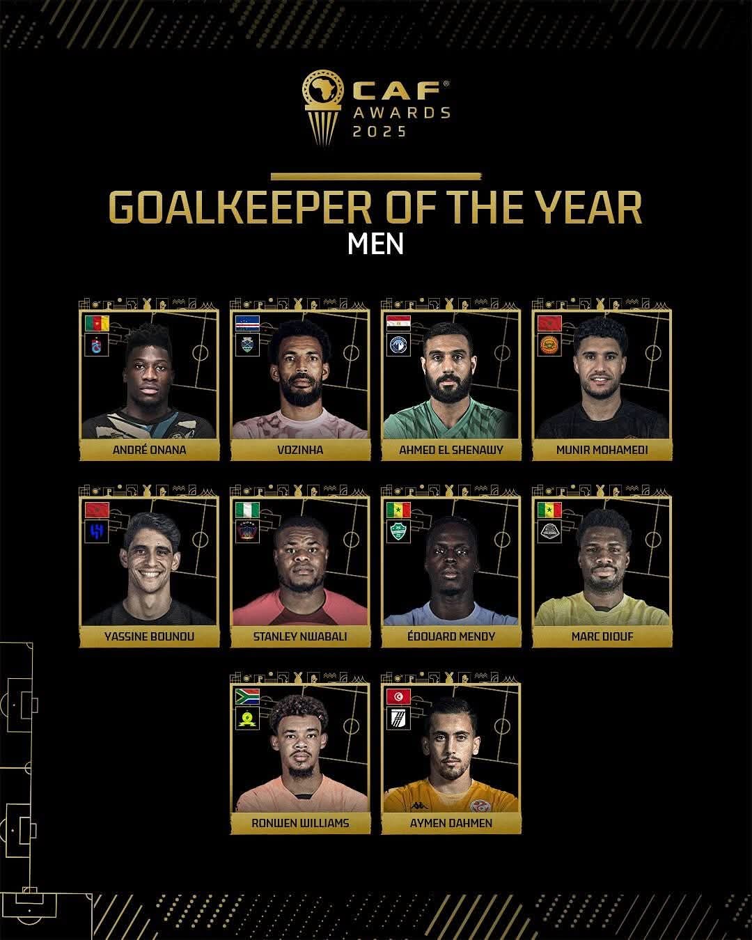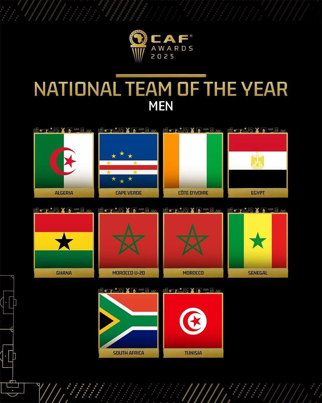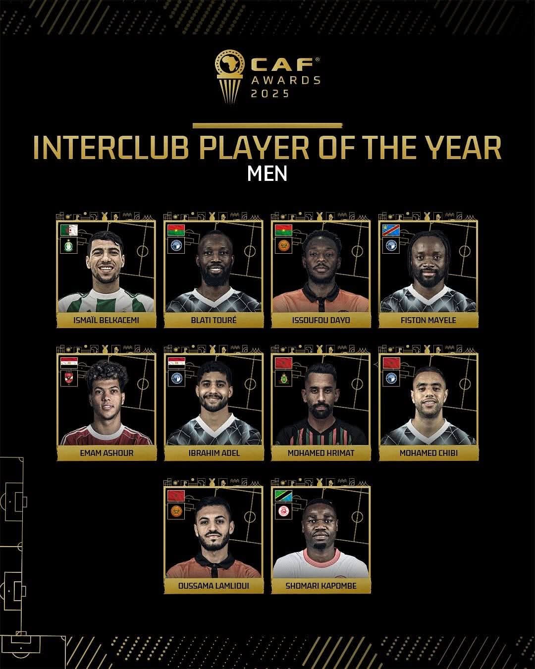 أعلن الاتحاد الأفريقي لكرة القدم قوائم المرشحين لجوائز الأفضل في الكرة الأفريقية عام 2025، والتي شهدت تواجد 11 ممثلا لكرة القدم المصرية، في مقدمتهم المنتخب المصري ومديره الفني حسام حسن وقائده محمد صلاح.