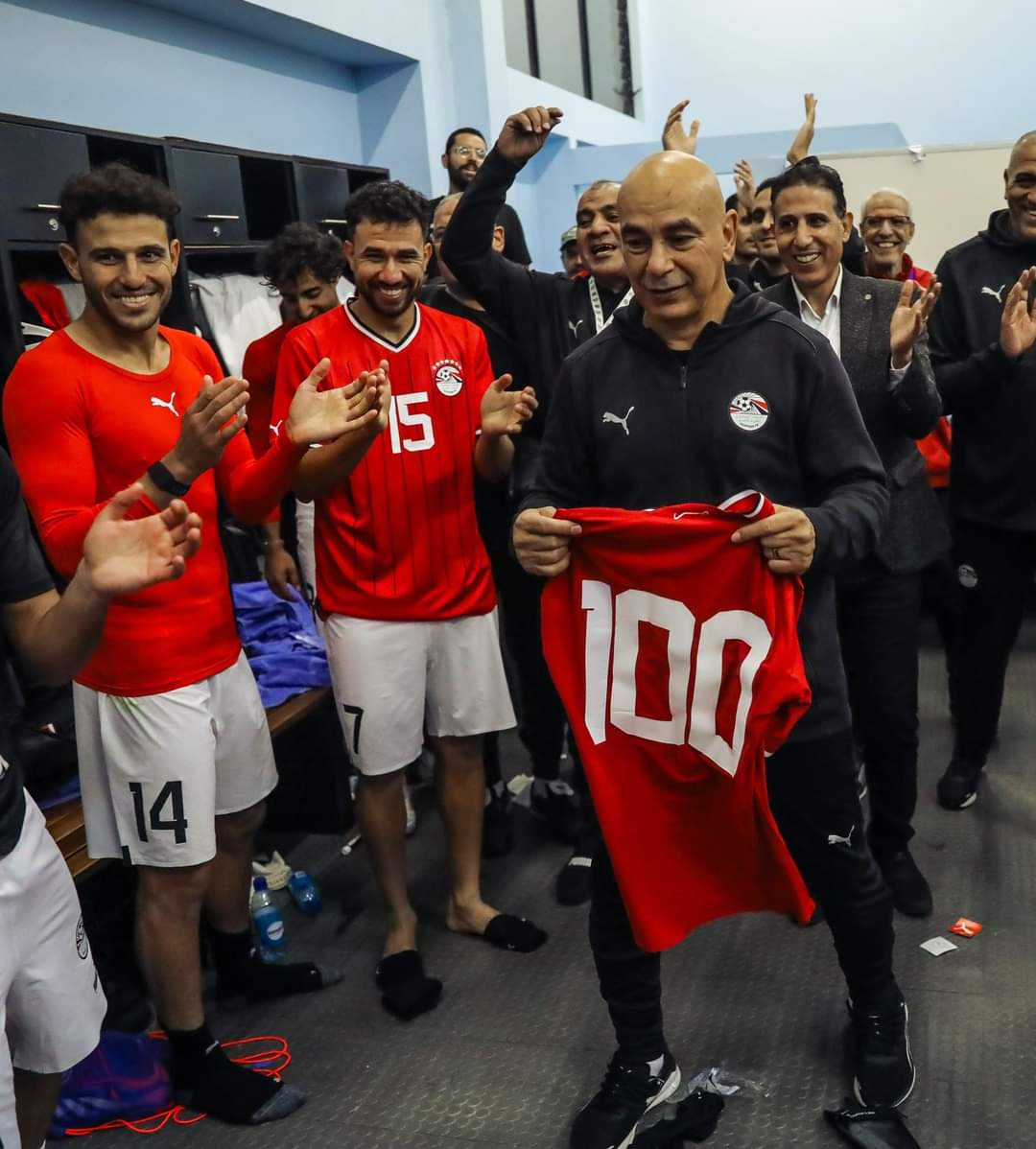 واحتفل إيهاب الكومي، عضو مجلس إدارة إتحاد الكرة، و الجهاز الفني لمنتخب مصر بقيادة حسام حسن المدير الفني، وجميع اللاعبين الذي سادت حالة من الفرح و الحب على وجوههم.