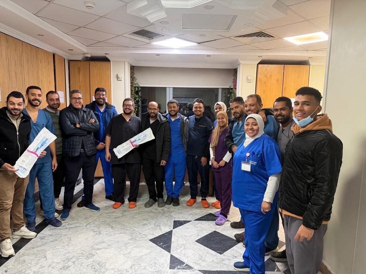 تم نجاح العملية بالتعاون بين أقسام المستشفى، فريق جراحة الأوعية الدموية، فريق التخدير، فريق القلب، فريق القسطرة الطرفية وفريق الرعاية المركزة.