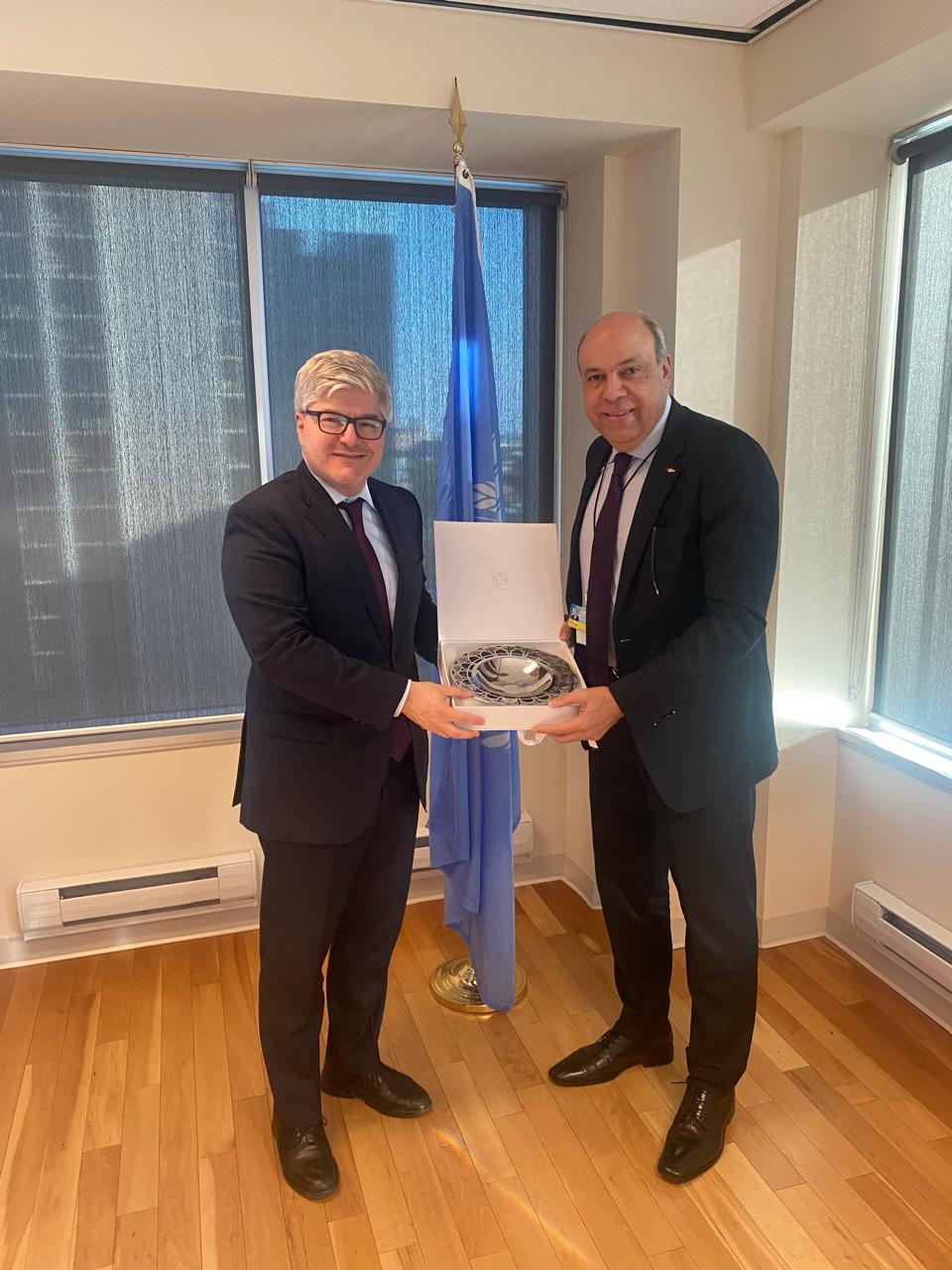 في إطار اللقاءات الثنائية رفيعة المستوى التي يعقدها الوفد المصري خلال مشاركته في أعمال الدورة الثانية والأربعين للجمعية العمومية لمنظمة الطيران المدني الدولي (الإيكاو) المنعقدة في مونتريال، التقى الدكتور سامح الحفني وزير الطيران المدني بالسيد خوان كارلوس سالازار سكرتير عام المنظمة بحضور السيد محمد أبو بكر فارع، المدير الإقليمي للمنظمة الدولية للطيران المدني (الإيكاو) لمنطقة الشرق الأوسط والأستاذة ريم عرابى الممثل المناوب لمصر في مجلس منظمة الإيكاو ..
