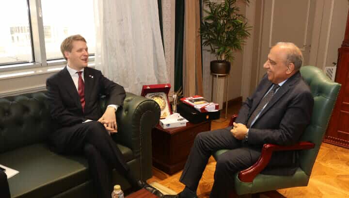 وزير الكهرباء والطاقة يبحث مع وزير التنمية الدولية استقبل الدكتور محمود عصمت، وزير الكهرباء والطاقة المتجددة، أوسموند أوكروست وزير التنمية الدولية بمملكة النرويج، بمقر الوزارة بالعاصمة الإدارية، بحضور السفير إريك هوسيم سفير النرويج لدى القاهرة، ومحمد عامر المدير الإقليمي لشركة سكاتك النرويجية، والوفد المرافق له، لبحث سبل دعم وتعزيز الشراكة والتعاون فى مجالات الكهرباء وتخزين الطاقة والابتكار التكنولوجي ونقل الخبرات وتعظيم العوائد من الطاقة النظيفة في إطار الاستراتيجية الوطنية للطاقة، وخطة التحول الطاقي، وبرنامج عمل قطاع الكهرباء لتنويع مصادر الطاقة والاعتماد على الطاقات المتجددة فى مزيج الطاقة، وما يستلزمه من إدخال مشروعات تخزين الكهرباء بتقنية البطاريات لتعزيز استقرار الشبكة وضمان استمرارية التغذية الكهربائية، وتلبية الطلب المتزايد على الطاقة.