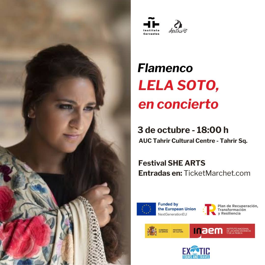 As part of the second day of the SHE ARTS Festival, Spanish singer Lela Soto will take the stage on October 3 at 6:00 PM in the main garden of the American University in Cairo – Tahrir Campus. The concert is held in collaboration with Instituto Cervantes in Cairo, within the framework of the festival’s annual celebration of women’s artistic expression from around the world.