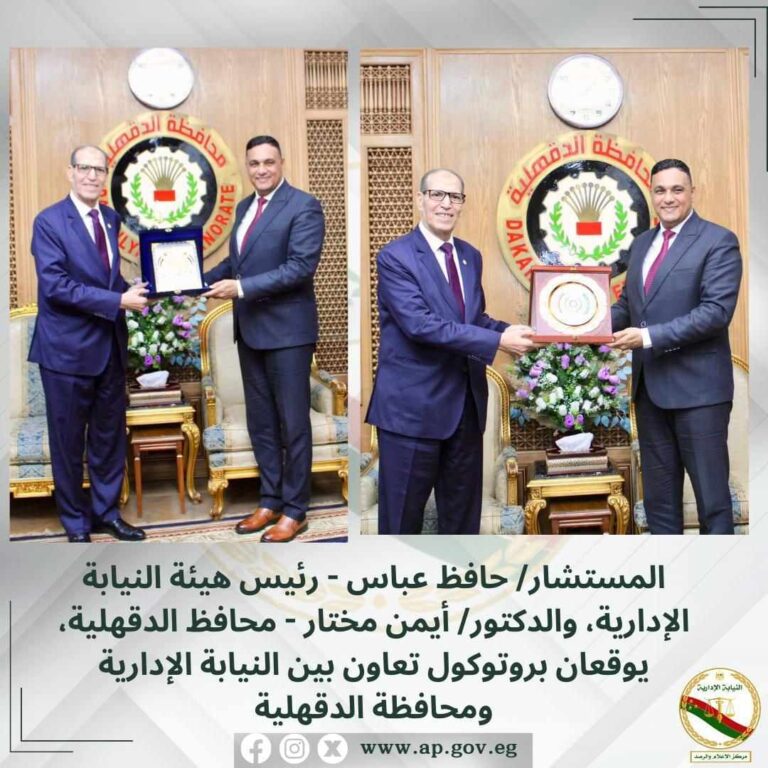 زار المستشار حافظ عباس – رئيس هيئة النيابة الإدارية، اليوم الأربعاء، محافظة الدقهلية، و التقى الدكتور أيمن مختار – محافظ الدقهلية؛ لتوقيع بروتوكول تعاون بين...