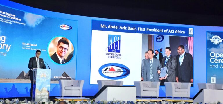 وزير الطيران المدني يلتقى بمدير عام المجلس الدولي للمطارات والأمين العام للمجلس ورئيس مجلس المطارات الإفريقية