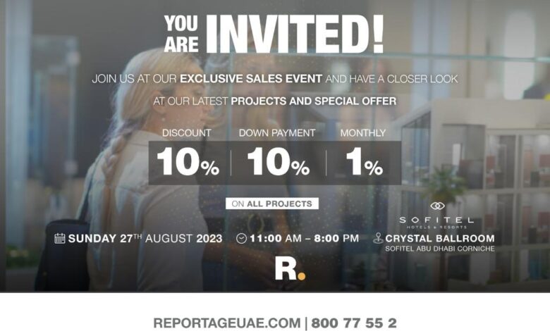 Reportage Properties, the leading UAE real estate developer, is organizing a special sales day at the Sofitel Abu Dhabi Corniche Hotel, next Sunday, August 27th.