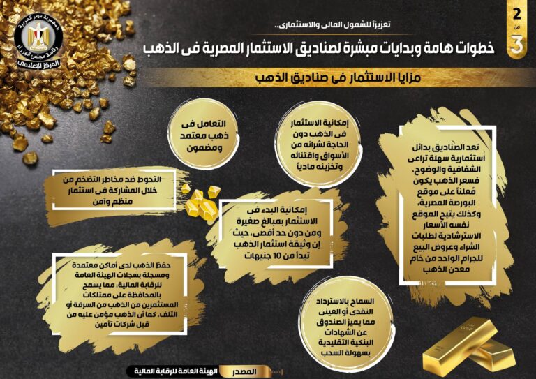 نشر المركز الإعلامي لمجلس الوزراء تقريرًا تضمن إنفوجراف يسلط الضوء على الخطوات الهامة والبدايات المبشرة لصناديق الاستثمار المصرية في الذهب، تعزيزًا للشمول المالي والاستثماري. وأوضح...