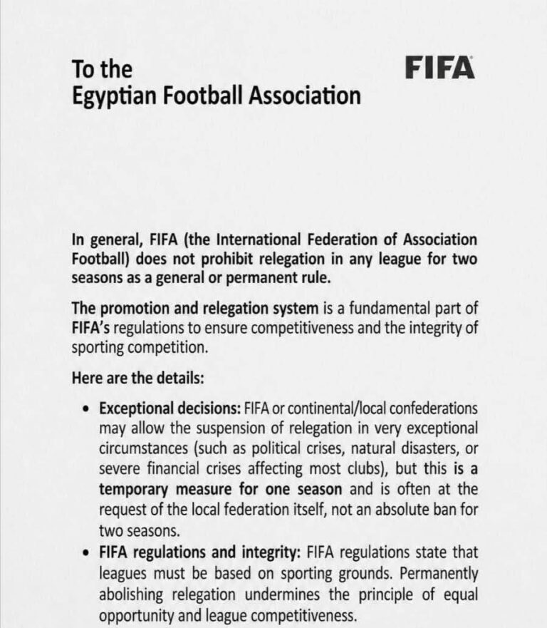 نفى الإتحاد المصري لكرة القدم عن وجود نية لإلغاء الهبوط لبطولة الدوري المصري هذا الموسم وأن كل ما يُنشر في هذا الموضوع غير صحيح بالمرة....