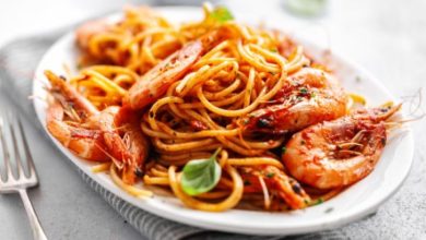 مكرونة بينك صوص بالجمبري بطريقة جديدة