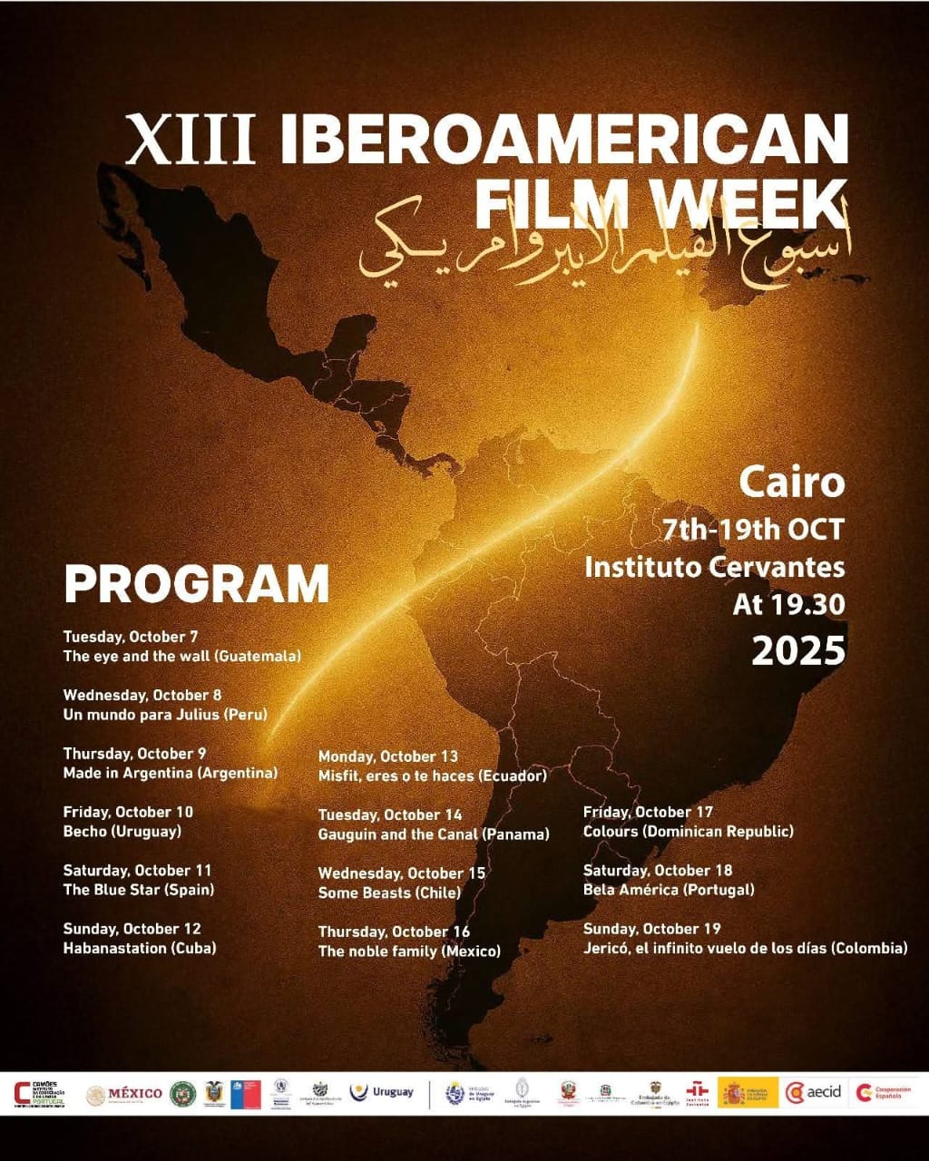 The 13th edition of the Ibero-American Film Week launches this evening, Tuesday, at 7:30 PM at Instituto Cervantes in Cairo, in collaboration with the Embassy of Spain and several Latin American embassies. Screenings will run from October 7 to 19.